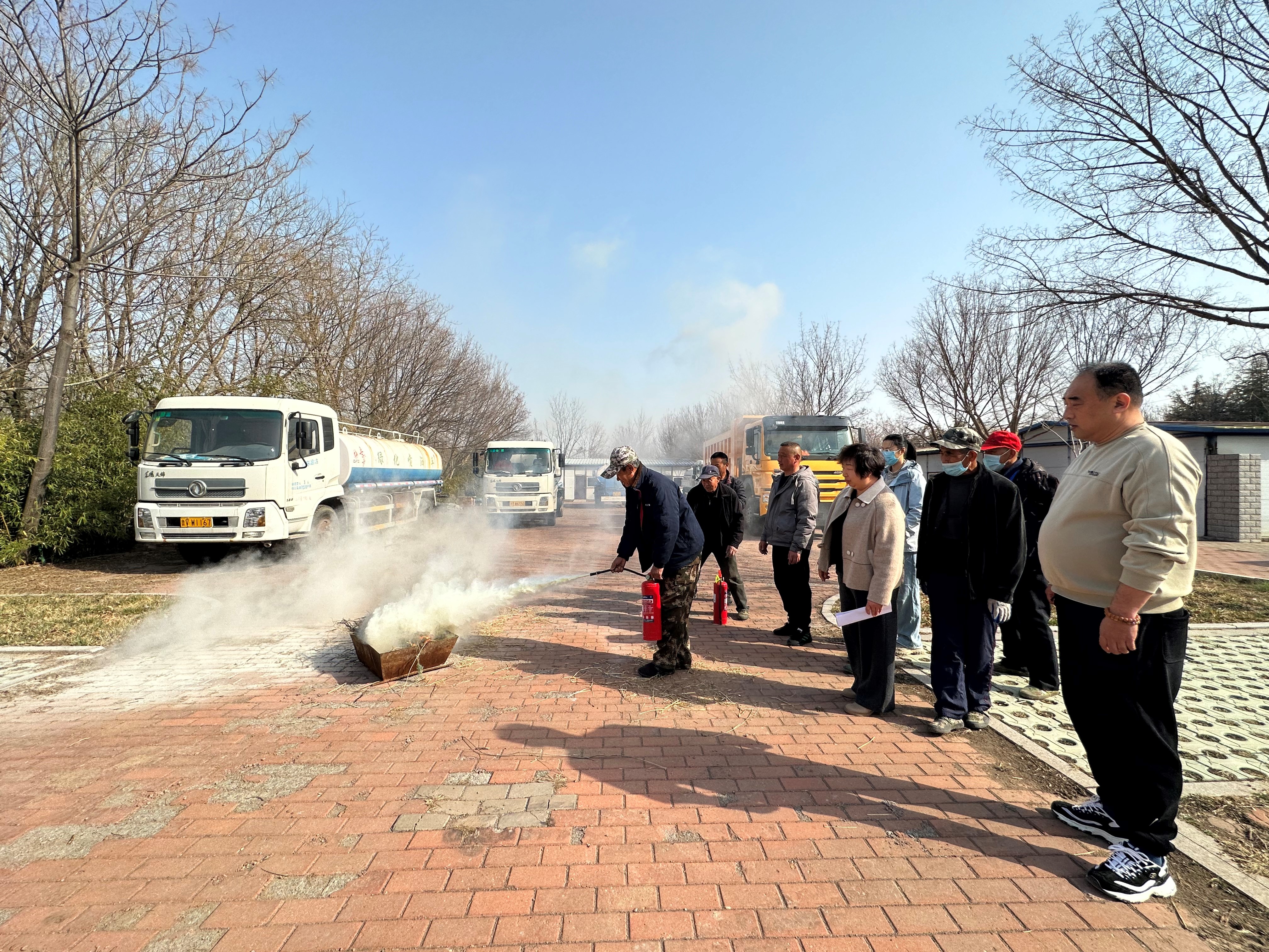為切實提高職工的消防安全意識、安全自救能力和自我保護能力,3月21日上午,市園林環衛集團臻成公司全體職工在月河路苗圃開展消防安全教育及春季消防演練活動。公司副總經理王云鳳主持召開安全生產會議,講解火災現場的應急處理方案,滅火器的原理、基本操作方法及注意事項等。在認真學習及觀摩后,全體職工展開實戰,按照滅火的步驟和方法,正確使用滅火器迅速滅火。最后,王云鳳帶領職工進行消防安全隱患排查,重點檢查電動車充電情況,消防器材的安全性能,消防隱患易存點等,要求發現問題立即整改,及時消除安全隱患。